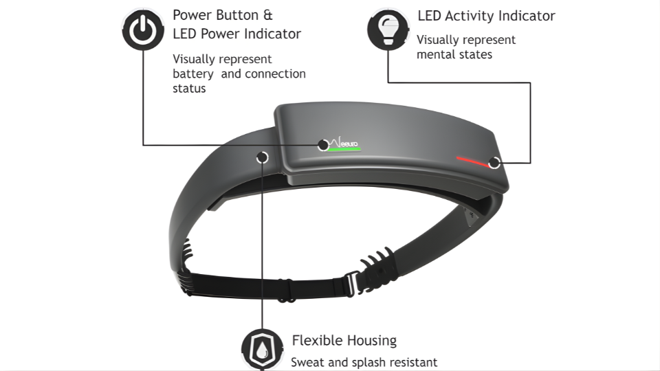 SenzeBand 2 – A non-invasive EEG headband that tracks brain activity and generates “brain scores” during training.